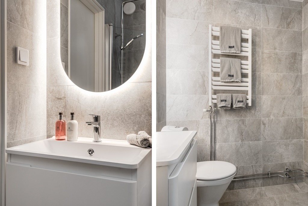 Här bor du smart och bekvämt med en låg månadsavgift och ett helt nytt, stilfullt renoverat badrum där materialen är noggrant utvalda.