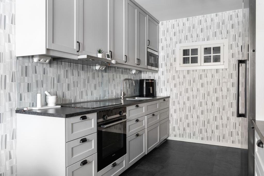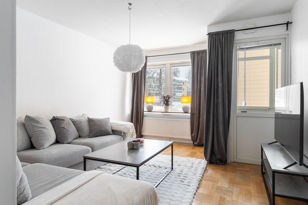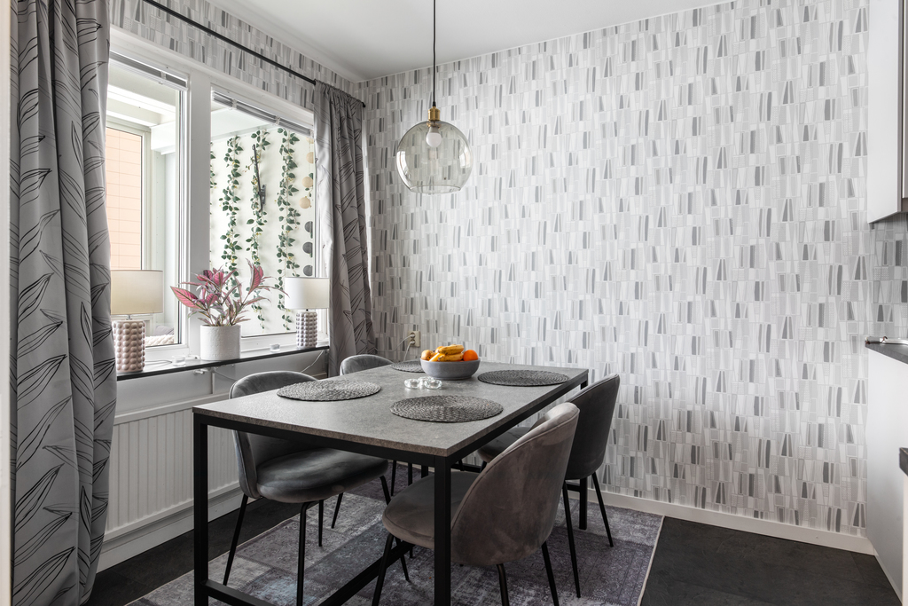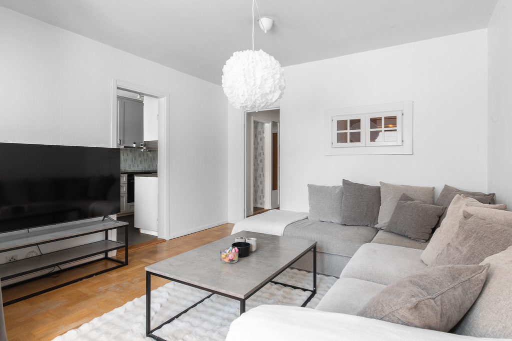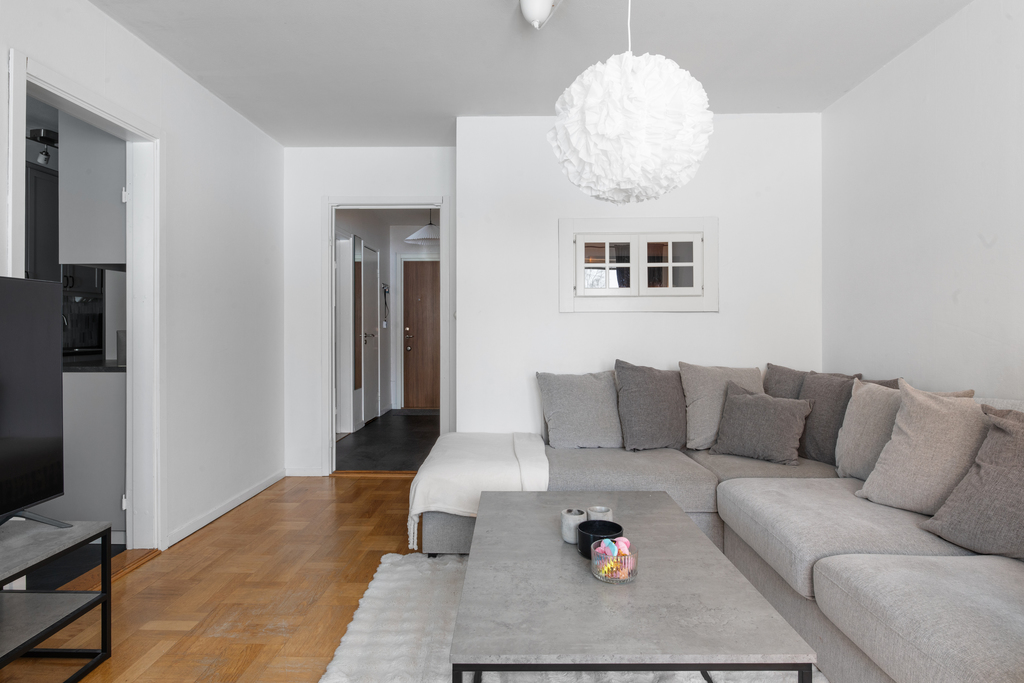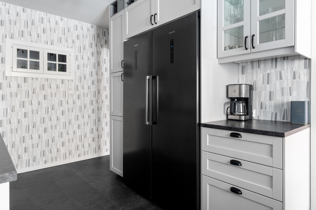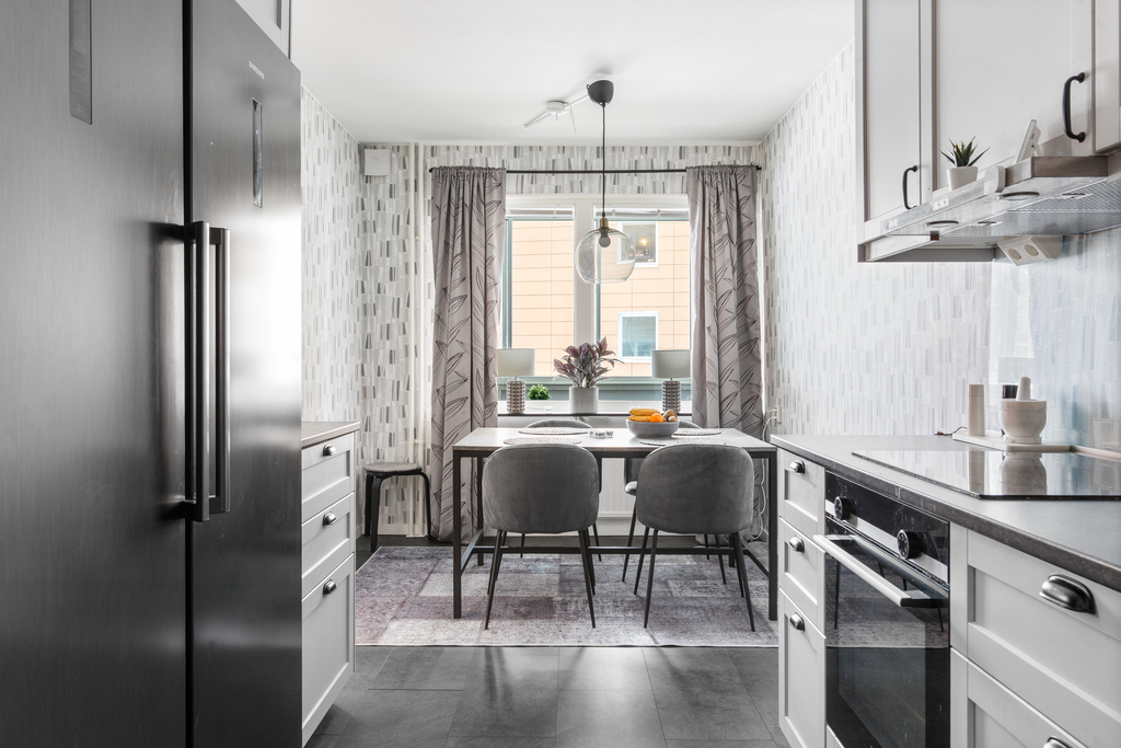 Lägenheten har genomgående fina ytskikt, köket är stilrent renoverat med bra bänkyta, skåpförvaring och plats för ett matbord för minst fyra personer. Här har du kvalitativa vitvaror från bl.a Samsung och Siemens. Integrerad ugn, häll och diskmaskin. En hel kyl och frys kommer att uppskattas av er matglada.
