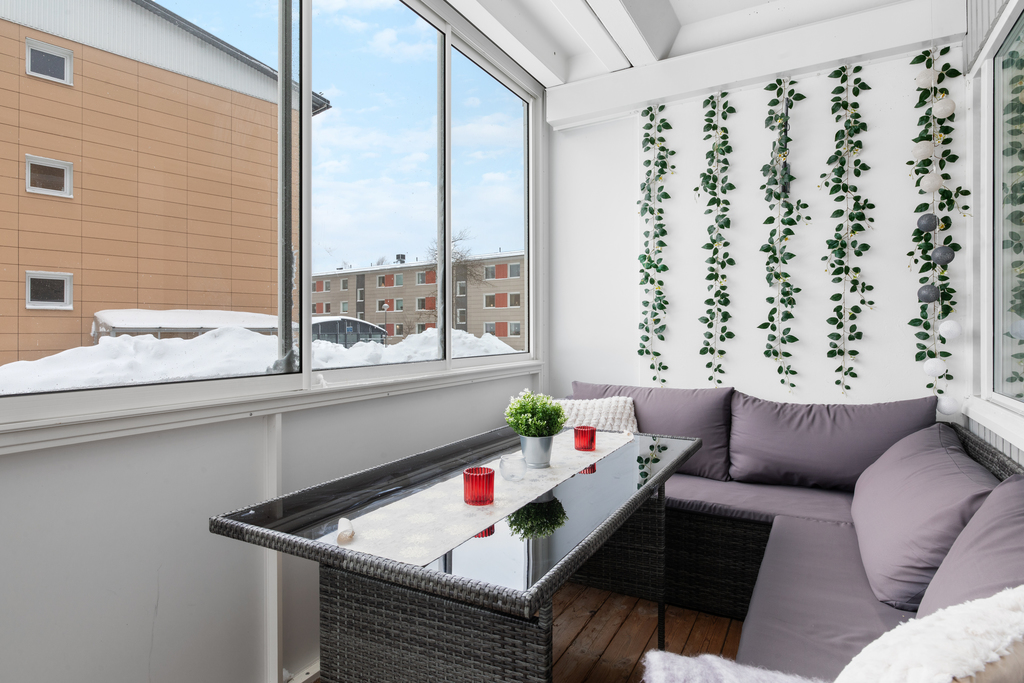 Från allrummet har du utgång till den inglasade uteplatsen i härligt söderläge.